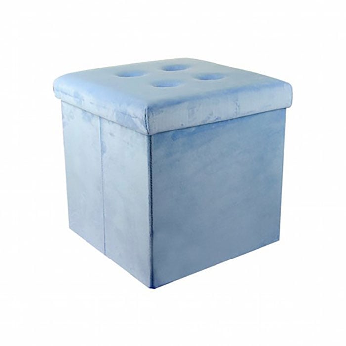 Σκαμπό από Βελουτέ Ύφασμα Γαλάζιο 38x38εκ με Αποθηκευτικό Χώρο