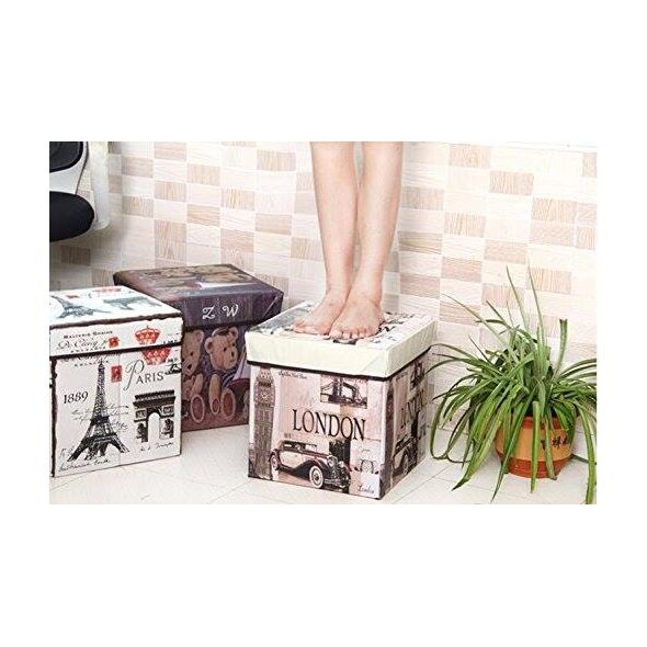 Σκαμπό Πτυσσόμενο με Αποθηκευτικό Χώρο 30x30x30cm με θέμα Λονδίνο