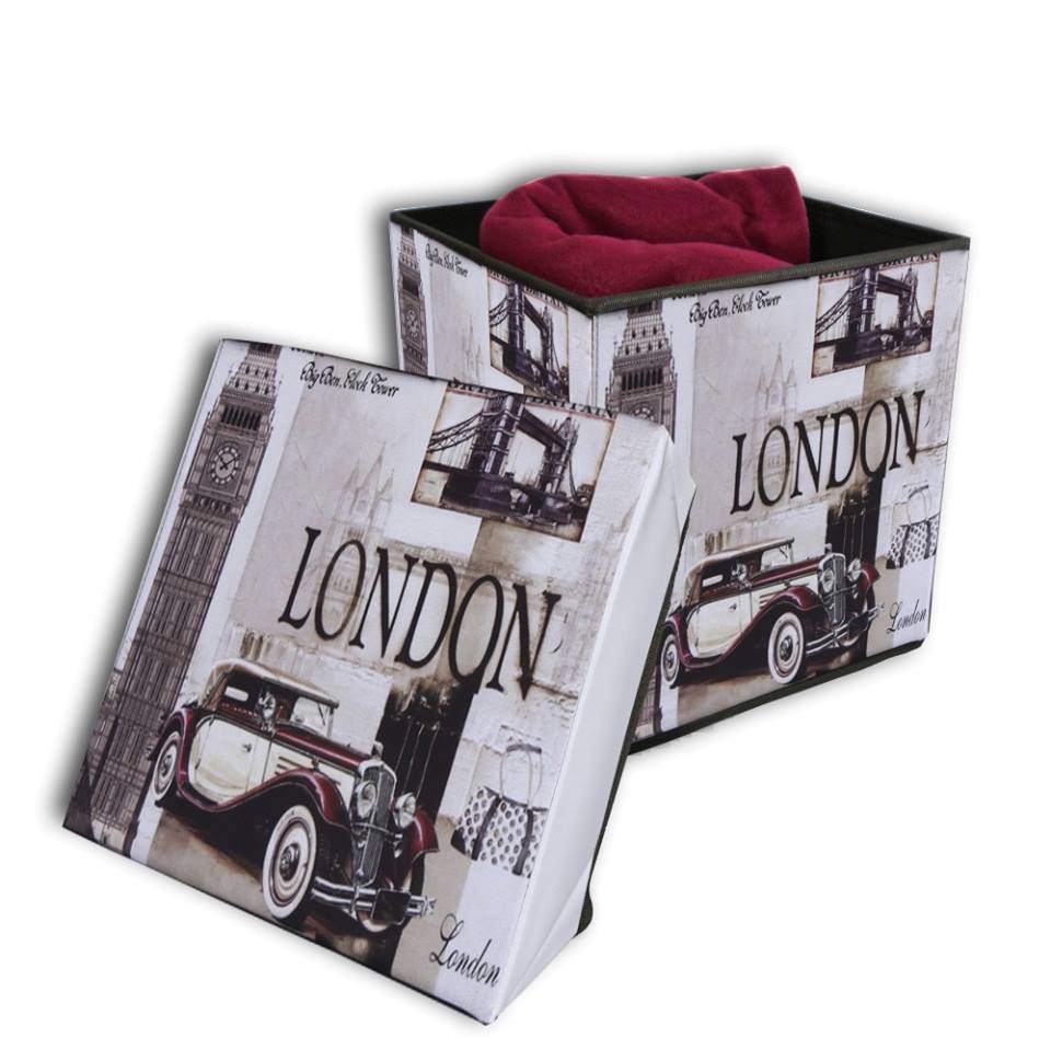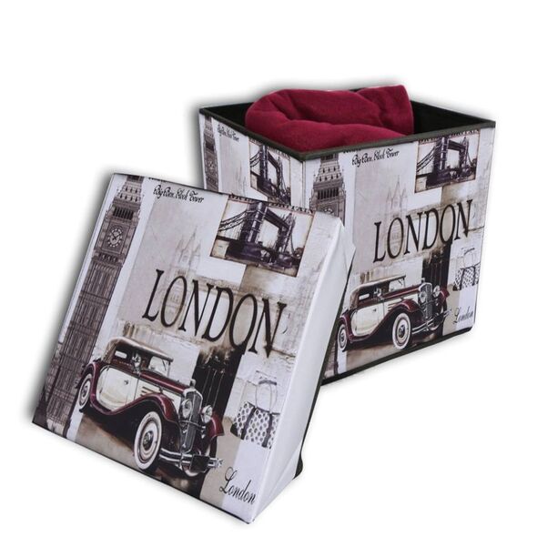 Σκαμπό Πτυσσόμενο με Αποθηκευτικό Χώρο 30x30x30cm με θέμα Λονδίνο