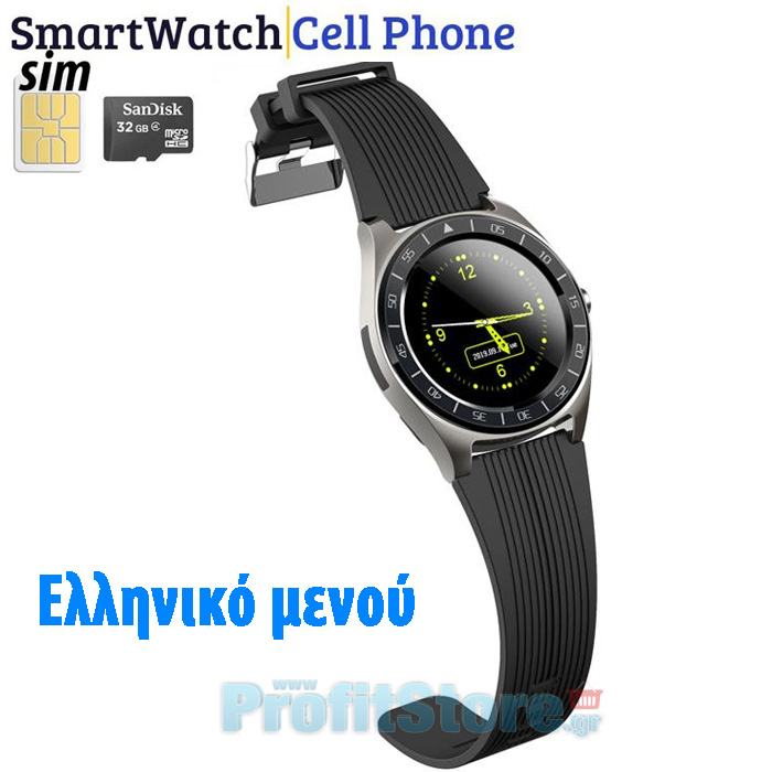 Smart Watch Αφής Κινητό Τηλέφωνο Bluetooth & Handsfree με Ελληνικό Μενού, Ίντερνετ, Κάμερα, Facebook, Twitter, Βηματομετρητή, Ποιότητα Ύπνου