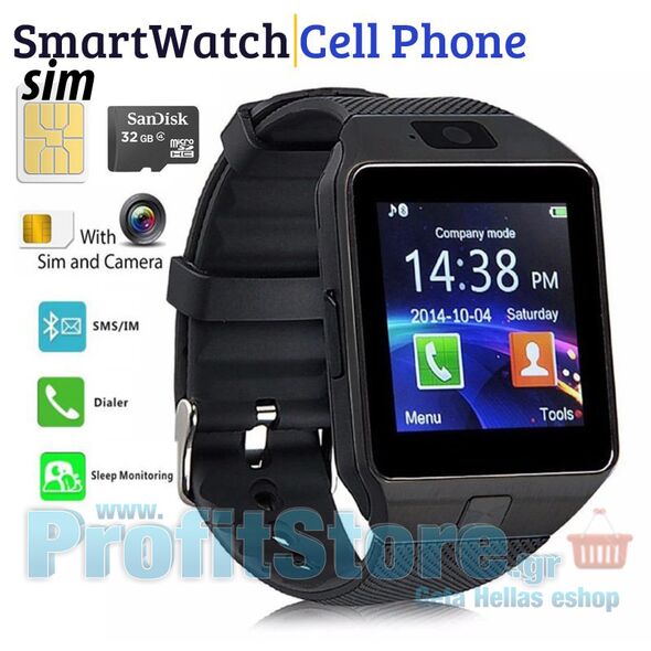 Smart Watch - Ρολόι Κινητό Τηλέφωνο με Οθόνη, Κάμερα - Βηματομετρητή, Μέτρηση Ποιότητας Ύπνου