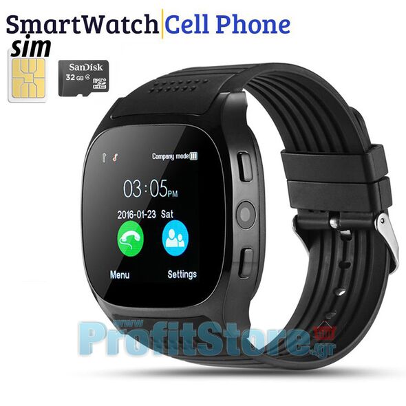 Smart Watch - Ρολόι Κινητό Τηλέφωνο Τ8 Sim με Οθόνη Αφής, Κάμερα, Βηματομετρητή, Μέτρηση Ύπνου, Facebook, Internet, Antilost & Ξυπνητήρι κα