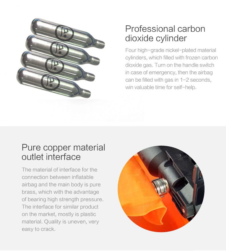 - Σε περίπτωση ανάγκης και τραβώντας τον μοχλό, το πορτοκαλί σωσίβιο φουσκώνει σε δευτερόλεπτα.