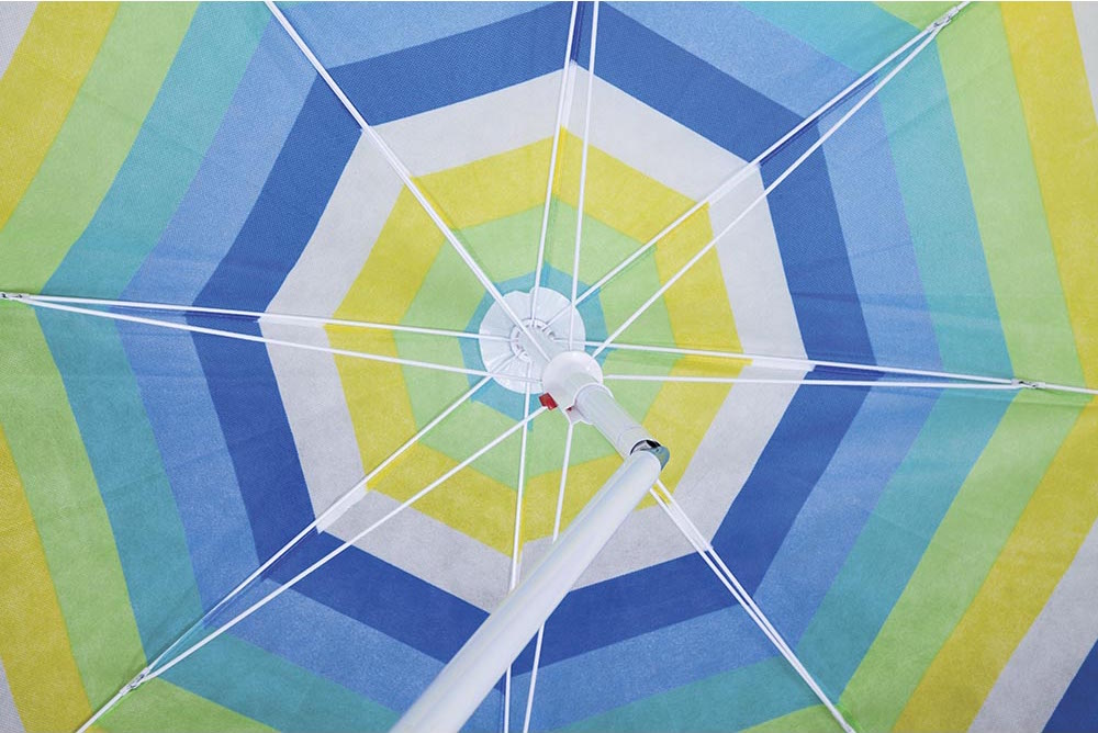Σπαστή ομπρέλα παραλίας με μεταλλικό δαχτυλίδι κλίσης.
