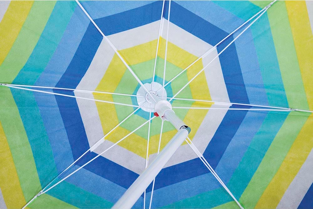 Σπαστή ομπρέλα παραλίας με μεταλλικό δαχτυλίδι κλίσης.