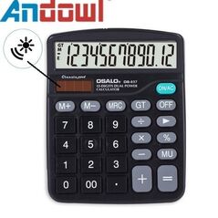 Πρακτική αριθμομηχανή γραφείου για απλές πράξεις με μία κίνηση με την εγγύηση ποιότητας της Andowl®. Είναι εξοπλισμένη με μεγάλη επικλινή οθόνη LCD 12 ψηφίων για μεγαλύτερη ευκολία. Μπορεί να λειτουργήσει με την ενέργεια του ήλιου ή με μπαταρία. Σβήνει αυτόματα για να εξοικονομεί ενέργεια.