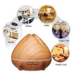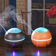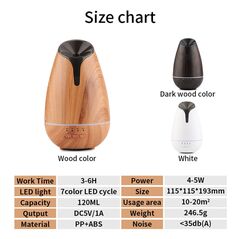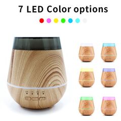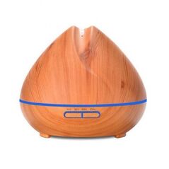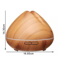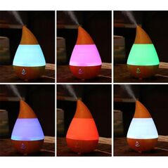 Υγραντήρας χώρου σε σχέδιο ξύλου και συσκευή αρωματοθεραπείας με τεχνολογία υπερήχων. Διαθέτει 8 διαφορετικά χρώματα σταθερού φωτισμού LED, 1 πρόγραμμα ήπια εναλλαγής και χρονοδιακόπτη.
