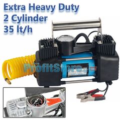 Heavy Duty φορητό κομπρεσέρ/τρόμπα αέρος αυτοκινήτου 12V, 150 PSI ιδανικό για μεγάλα οχήματα, 4x4, αγροτικά, φορτηγά κλπ. αλλά και για να φουσκώσετε λάστιχα, μπάλες, στρώματα. 2 κύλινδροι και ροή άερα 35 lt/h. Όργανο ακριβείας σε BAR και PSI. Ισχύς 30Α.
