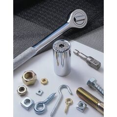 Ένα επαναστατικής σχεδίασης πολυ-εργαλείο που καταργεί τα συνηθισμένα καρυδάκια. Κατάλληλο για βίδωμα & ξεβίδωμα κάθε βίδας (εξάγωνες, βιδοθηλιές, γάντζους). Διαθέτει υποδοχή 1/2'' για καστάνια & δυνατότητα από 7 mm έως 19mm. Συνοδεύεται από καστάνια και από αντάπτορα για δραπανοκατσάβιδο ρεύματος ή μπαταρίας.
