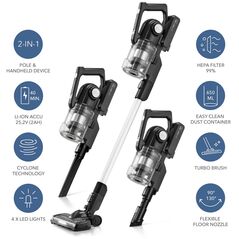Ηλεκτρική σκούπα stick της εταιρείας Arrango με ισχύ 120 Watt. Είναι κατάλληλη για το βασικό καθάρισμα του σπιτιού, ακόμα και για εντατικές εργασίες και μπορεί να αντικαταστήσει τη συχνή χρήση της ηλεκτρικής σκούπας. Επιπλέον, μετατρέπεται εύκολα σε σκουπάκι χειρός, ώστε να το χρησιμοποιήσετε για γρήγορο καθαρισμό.
