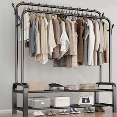 Εύχρηστη κρεμάστρα ρούχων μονού πόλου - καλόγερος με παπουτσοθήκη - Ραφιέρα 2 ράβδων στο κάτω μέρος.Εξαιρετικά ανθεκτική.