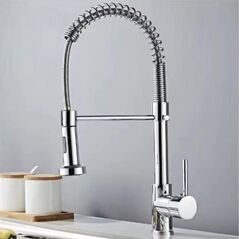 Ψηλή αναμεικτική μπαταρία κουζίνας 47cm με εύκαμπτο σπιράλ και ελατήριο για μέγιστη ευελιξία. Κατασκευή από ανοξείδωτο ατσάλι 201, περιστροφή 360° και εύκολη ρύθμιση ζεστού-κρύου νερού. Ιδανική για νεροχύτη κουζίνας, πλύσιμο πιάτων και γέμισμα μεγάλων σκευών, με μοντέρνο επαγγελματικό σχεδιασμό.
