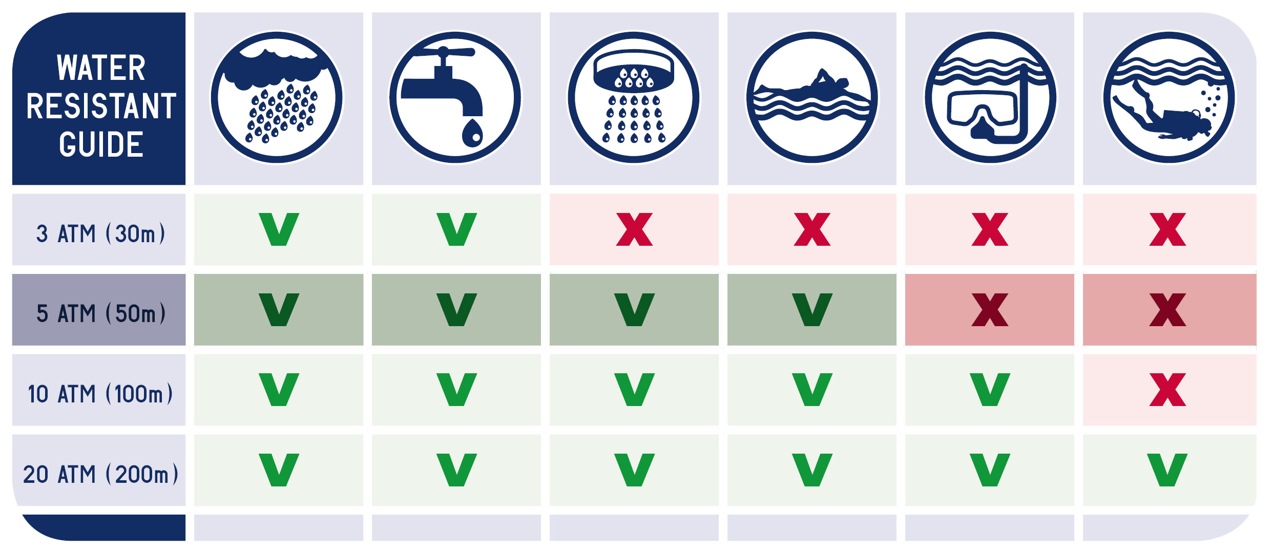 - 50m αδιάβροχο ανθεκτικό και για κολύμβηση (5 ATM)*