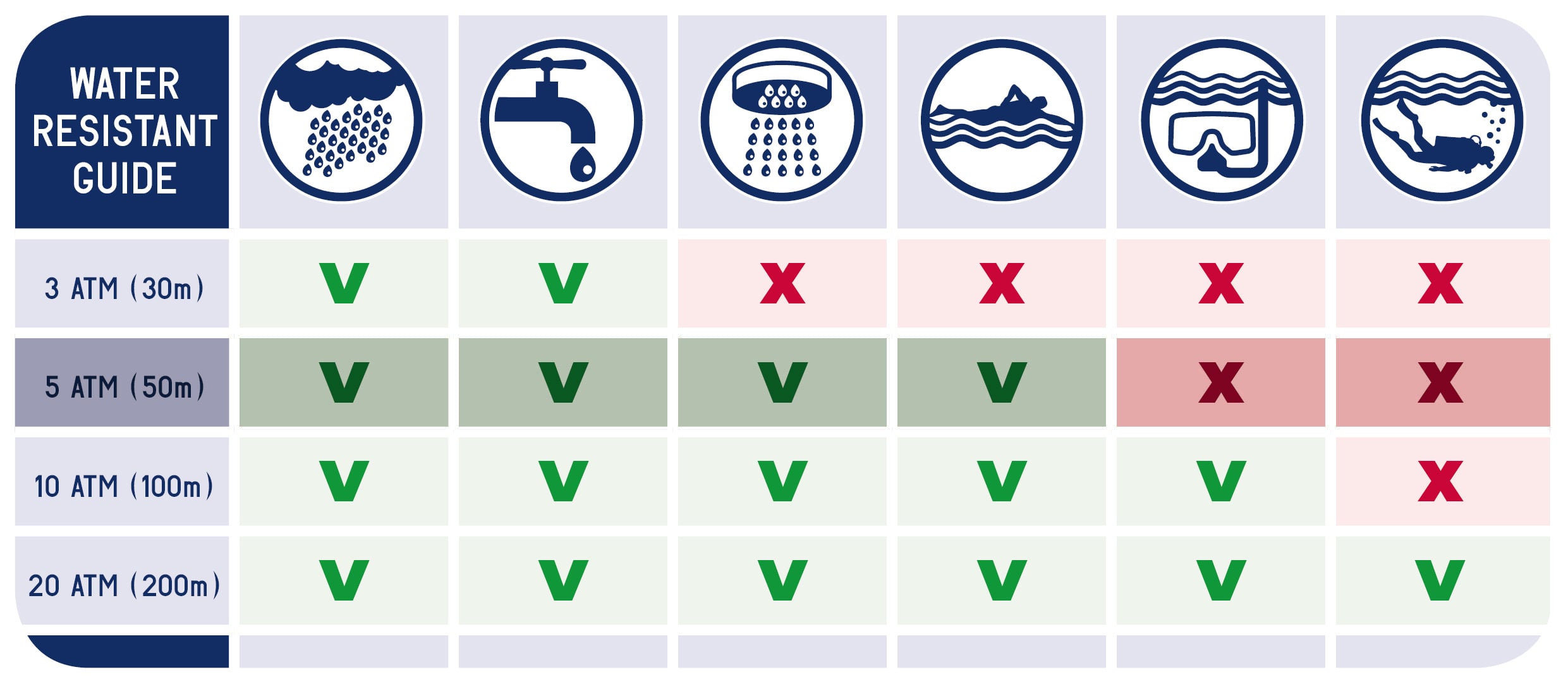 - 50m αδιάβροχο ανθεκτικό και για κολύμβηση (5 ATM)*