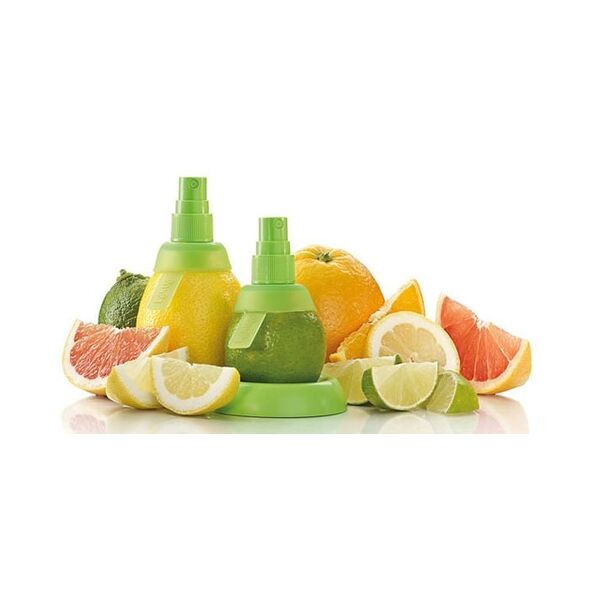Το σετ περιλαµβάνει 2 μεγεθών Citrus Sprayers και µία βάση για να τα τοποθετούµε ώστε να µη λερώνονται οι επιφάνειες από το χυµό του εσπεριδοειδούς.