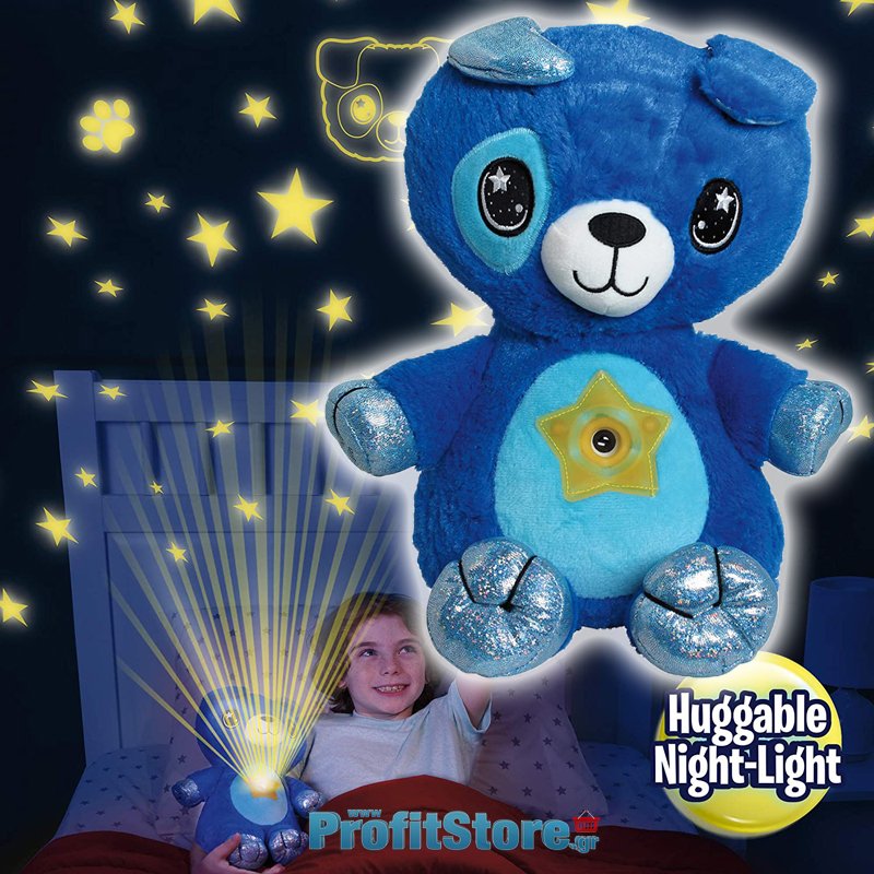 Starry Teddy Προτζέκτορας Αστεριών, Λούτρινο Αρκουδάκι 30cm & Νυχτερινό Φωτιστικό LED Νανουρίσματος - Huggable Night Light Μπλε Bear