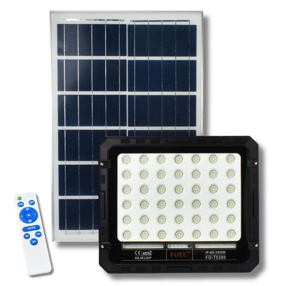 Στεγανός Ηλιακός Προβολέας LED 300W Ψυχρός Λευκός Φωτισμός - 6500K με Τηλεχειριστήριο & Προστασία IP66