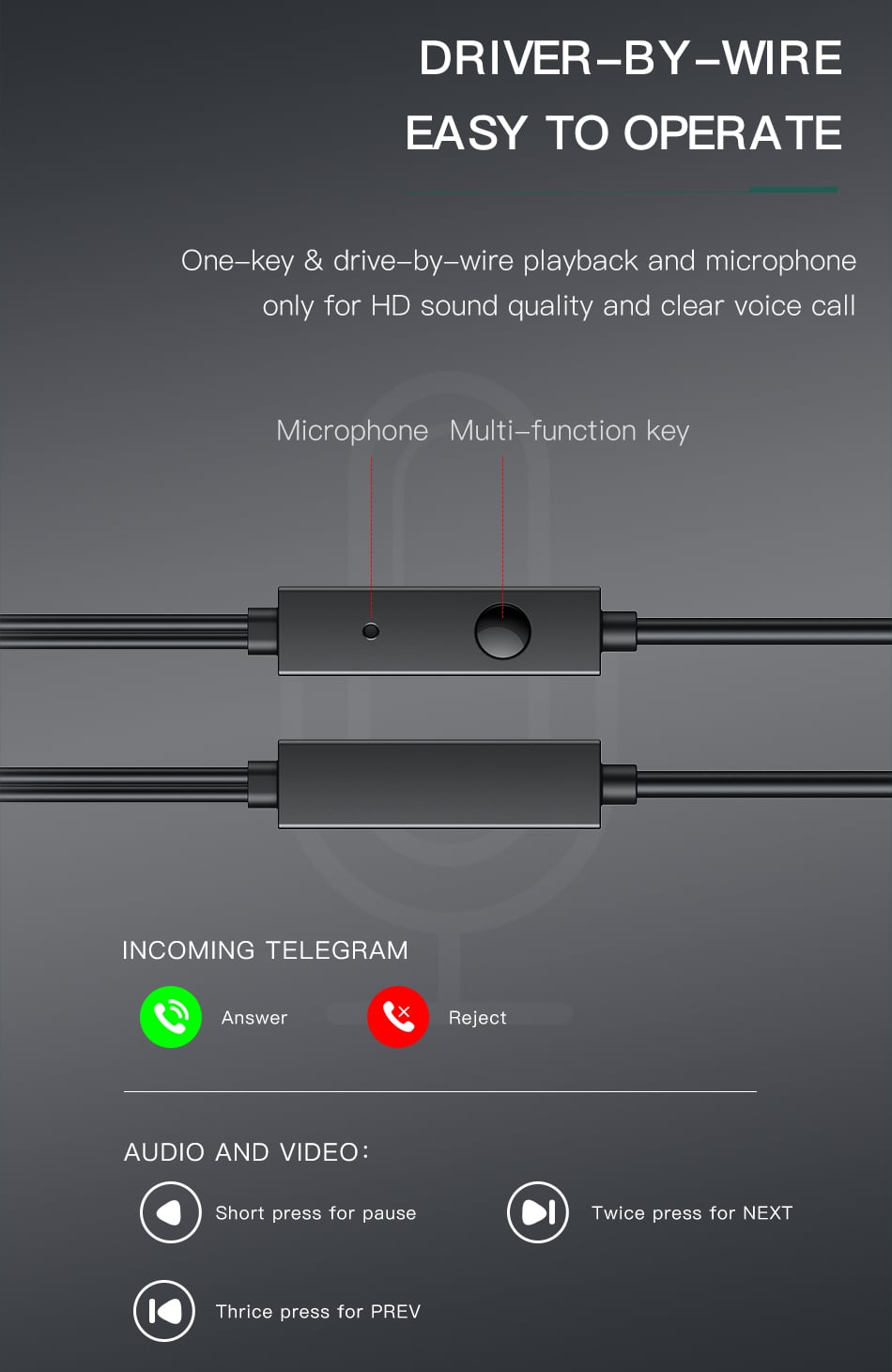Το ενσωματωμένο στο καλώδιο χειριστήριο σας δίνει την δυνατότητα να επιλέγετε τη λειτουργία που χρειάζεστε, να αυξομειώνετε την ένταση του ήχου, να προχωράτε στον επόμενο/προηγούμενο ραδιοφωνικό σταθμό/τραγούδι όπως και πολλές άλλες λειτουργίες.