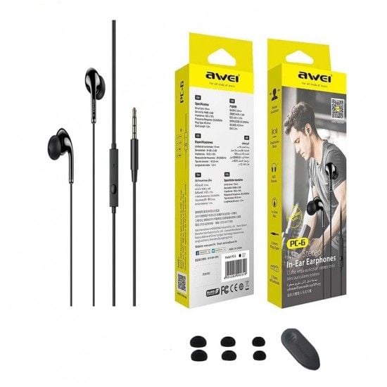 Awei Στερεοφωνικά Ακουστικά Handsfree Ενσύρματα με Μικρόφωνο & Βύσμα 3.5mm Awei In-ear Μαύρο
