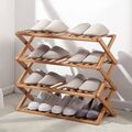 Στιβαρή Αναδιπλούμενη Ραφιέρα - Παπουτσοθήκη Μπαμπού με 3 Ράφια 46x70x25cm - Ξύλινη