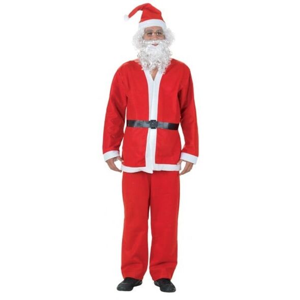 Στολή Άη Βασίλης Ενηλίκων με Τζάκετ, Παντελόνι, Σκούφο, Ζώνη & Γενειάδα- Χριστουγεννιάτικο Πλήρες Σετ Άγιος Βασίλης