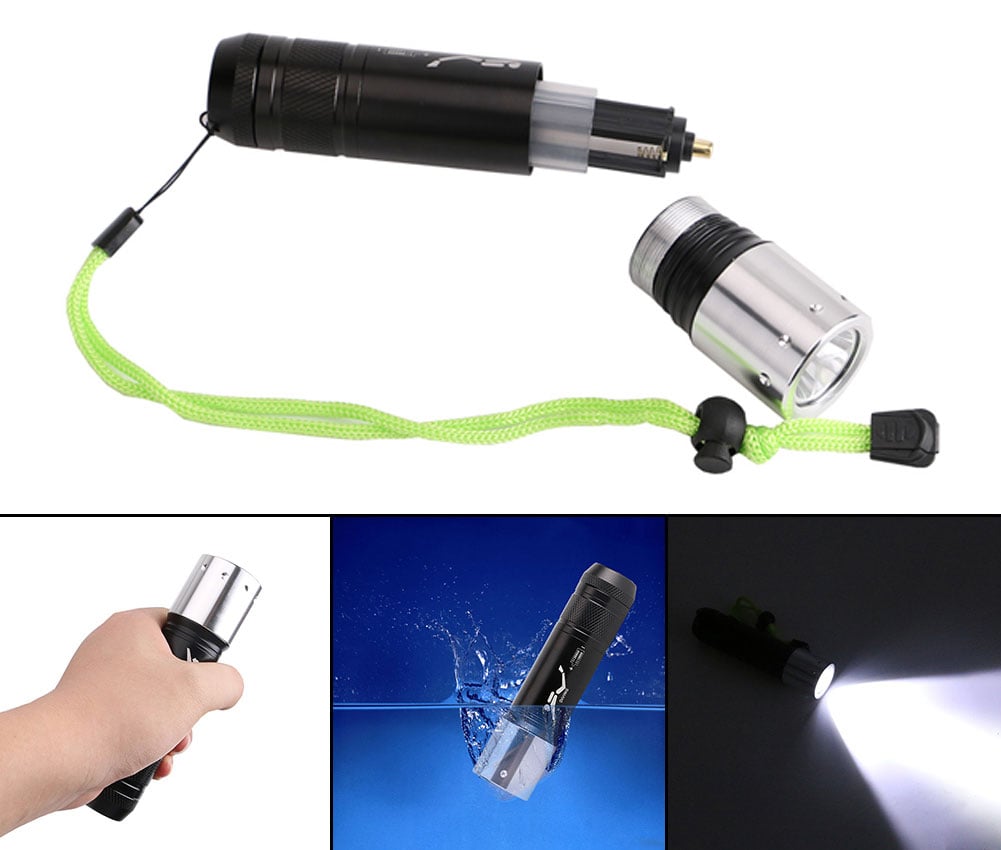 Ο αδιάβροχος εκτυφλωτικός CREE Τ6 LED φακός με υπέρ-ισχυρή πραγματική φωτεινότητα 1000 Lumens (όχι δήθεν) και θερμότητα 5300K (λευκός έντονος φωτισμός) εγγυάται να κάνει την νύχτα μέρα σε κάθε σπηλιά και κάθε βυθό! Τυφλώστε και ακινητοποιείστε ψάρια, αν ψαρεύεται, χάρη σε αυτόν τον Super Bright αδιάβροχο καταδυτικό φακό με δυνατό φωτισμό!