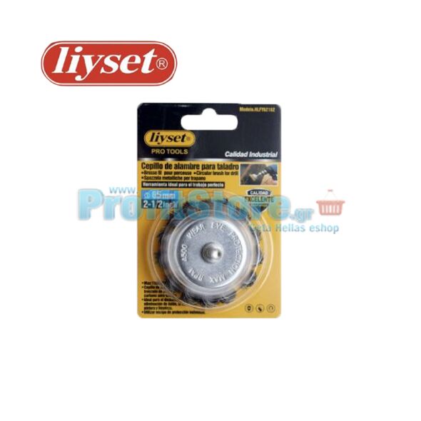 Συρματόβουρτσα Καμπάνα Ατσάλινη Στριφτή Δράπανου με Αξονάκι Liyset 65mm
