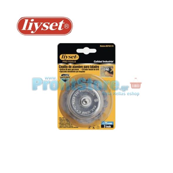 Συρματόβουρτσα Καμπάνα Ατσάλινη Στριφτή Δράπανου με Αξονάκι Liyset 75mm