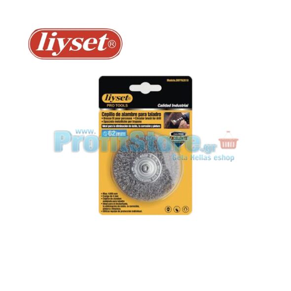 Συρματόβουρτσα Στρογγυλή Ατσάλινη Δράπανου με Αξονάκι Liyset 62mm