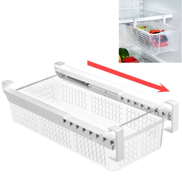 Συρόμενο Κρεμαστό Συρτάρι & Ράφι Ψυγείου - Ρυθμιζόμενο Λευκό Πλαστικό ΟΕΜ