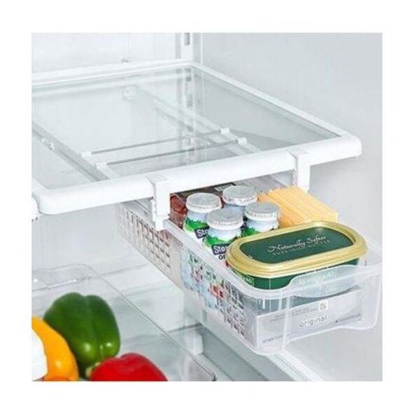 Συρόμενο Κρεμαστό Συρτάρι & Ράφι Ψυγείου - Ρυθμιζόμενο Λευκό Πλαστικό ΟΕΜ