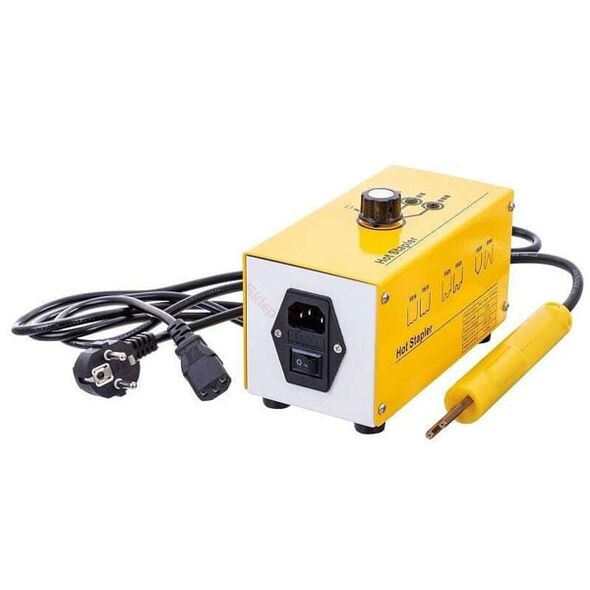 Κατάλληλη για την επιδιόρθωση ρωγμών σε πλαστικά μέρη με πάχος άνω του 1 mm, η συσκευή θερμαίνει τους ειδικούς μεταλλικούς συνδετήρες σε θερμοκρασίες από 100 έως 200°C.