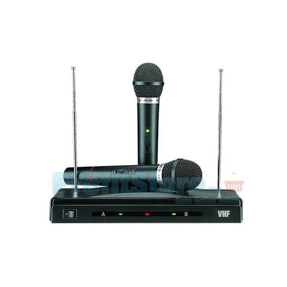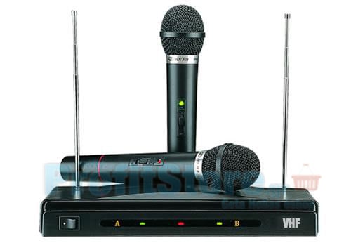Υψηλής πιστότητας ασύρματο σύστημα για Καραόκε, 2 ασύρματων μικροφώνων, που συνδέεται πανεύκολα με οποιαδήποτε σύστημα διαθέτει είσοδο ήχου (audio input) και θα έχετε ένα 'επαγγελματικό' σύστημα Karaoke, με 2 ασύρματα μικρόφωνα που μπορούν να λειτουργήσουν ταυτόχρονα !