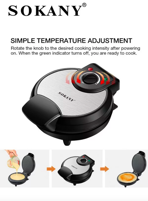 Απολαύστε το παγωτό σας με σπιτικά καλοφτιαγμένα χωνάκια χάρη στη συσκευή της Sokany. Διαθέτει αντικολλητική επίστρωση, θερμαίνεται γρήγορα και ομοιόμορφα.