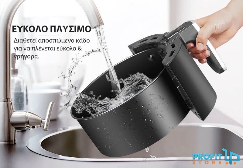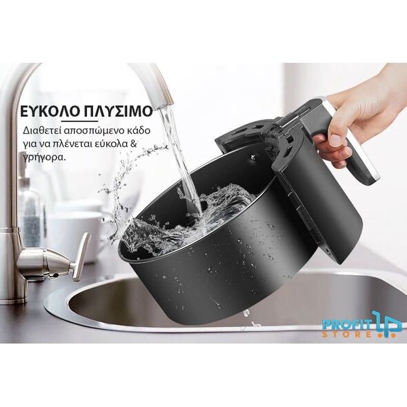 Διαθέτει πρωτοποριακό δοχείο μαγειρέματος, το οποίο αποσπάταιι, για να το πλένετε με μεγάλη ευκολία κάτω από την βρύση, χωρίς να αφήνει λεκέδες και έντονη δυσοσμία τηγανίλας.
