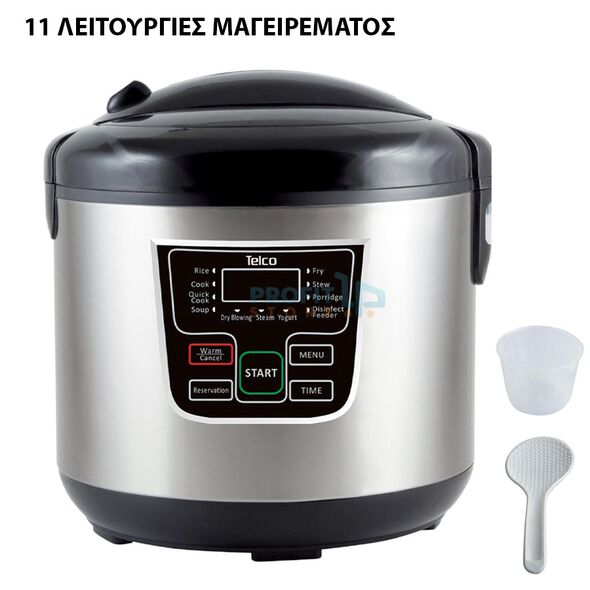 - 1 x Telco Multicooker Ανοξείδωτος Πολυμάγειρας 900W 5L με 11 Λειτουργίες Μαγειρέματος, Οθόνη LCD, Αποσπώμενο Δοχείο & Βαλβίδα Ατμού Ασφαλείας