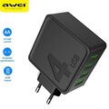 Τετραπλός Φορτιστής Πρίζας 100-240V με 4x USB Θύρες 4.0A Γρήγορης Φόρτισης - Αντάπτορας Τοίχου AWEI - Μαύρο, Μαύρο