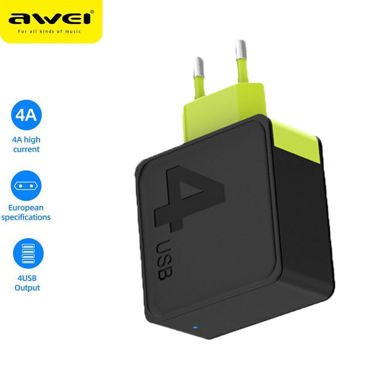 Καινοτόμος ταχυφορτιστής USB τοίχου με την εγγύηση ποιότητας της Awei! Διαθέτει 4 θύρες USB όπου μπορούν να φορτίσουν γρήγορα με 4.0Α 4 συσκευές ταυτόχρονα.
