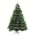 Οι λευκές χιονισμένες άκρες και οι διακοσμητικές κουκουνάρες με κόκκινες ρώγες προσθέτουν μια φυσική πινελιά, καθιστώντας το ιδανικό για σαλόνια, καταστήματα ή επαγγελματικούς χώρους με γιορτινή διακόσμηση.