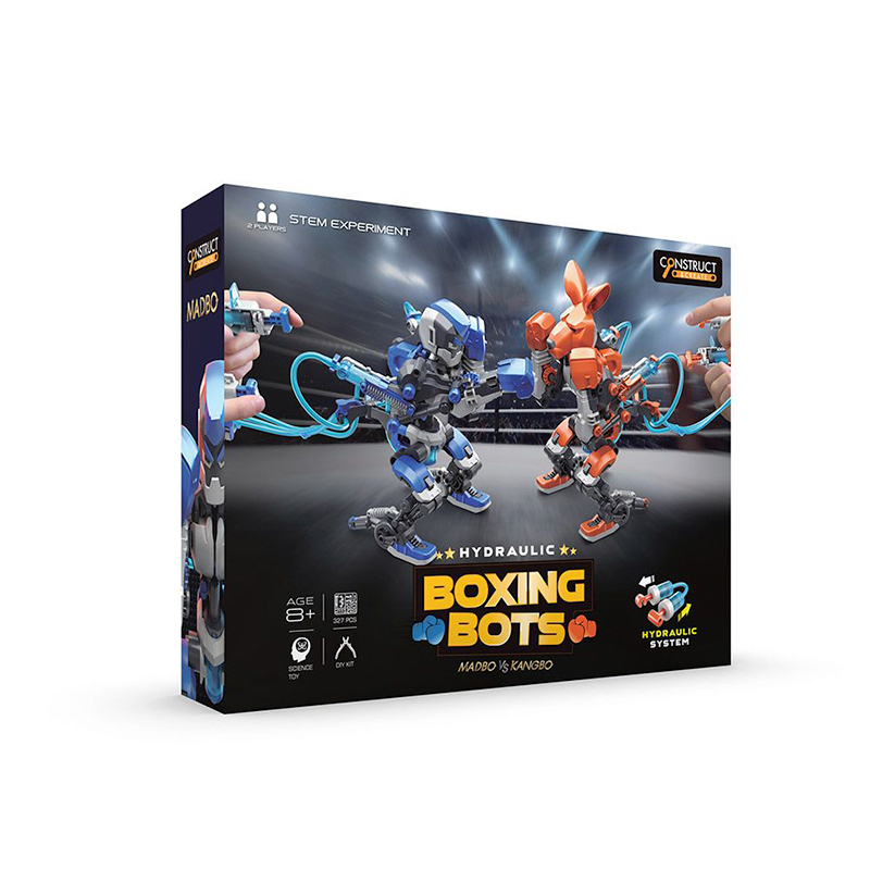 Αυτά τα Ρομπότ πυγμαχίας χρησιμοποιούν υδραυλική ισχύ για να κινούνται σαν πραγματικοί μποξέρ. Γεμάτο με τον ενθουσιασμό ενός πραγματικού αγώνα πυγμαχίας και τη διασκέδαση της κατασκευής απίστευτων μηχανικών μοντέλων, αυτό το κιτ σας επιτρέπει να κατασκευάσετε 2 ρομπότ και να προκαλέσετε έναν φίλο σας σε έναν συναρπαστικό αγώνα.Χρησιμοποιήστε τα χειροκίνητα υδραυλικά χειριστήρια και αγωνιστείτε σαν πραγματικός πρωταθλητής.