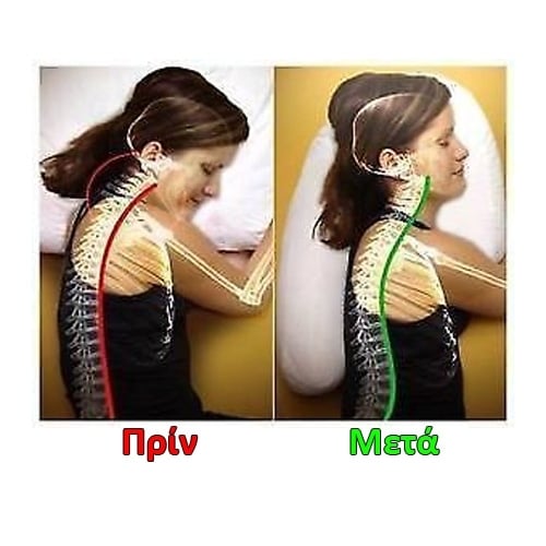 Το ειδικό του σχήμα σας επιτρέπει να κοιμάστε στο πλάι με την σωστή στάση χωρίς να καμπουριάζετε και να έχετε ως αποτέλεσμα τους πόνους στην πλάτη.