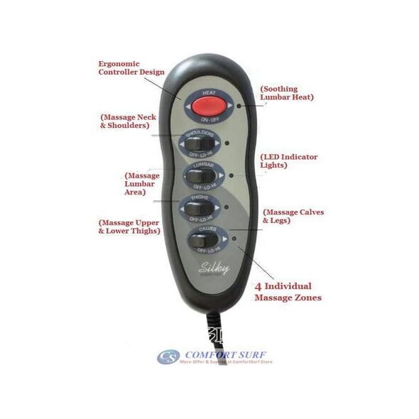 Χρησιμοποιήστε το βολικό τηλεχειριστήριο ( ενσύρματο ) για να επιλέξετε από τα επίπεδα έντασης της δόνησης, στοχεύστε τις περιοχές του σώματος που θέλετε να ανακουφίσετε και προσθέστε ή αφαιρέστε την επιλογή υπέρυθρης θερμότητας.