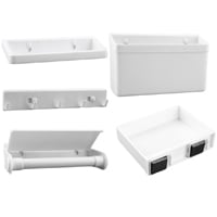 Το σετ 5 σε 1 περιλαμβάνει : μία θήκη για ρολό κουζίνας, μία κρεμάστρα,θήκη μικρή (για μπαχαρικά κ.λ.π.),θήκη μεγάλη και θήκη για χαρτομάντιλα γραφείου.