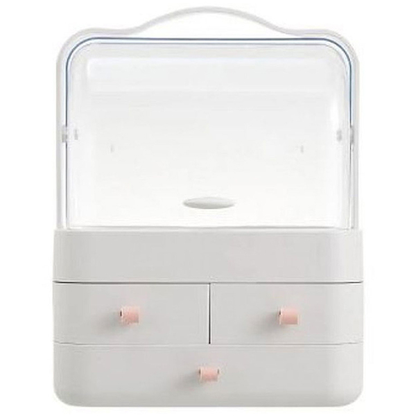Θήκη Οργάνωσης Καλλυντικών Μακιγιάζ με 3 Συρτάρια και Διαφανές Καπάκι Λευκό - Cosmetic Storage Box