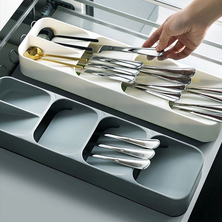 Η θήκη οργάνωσης συρταριού για μαχαιροπήρουνα είναι μοναδικά σχεδιασμένη για να δημιουργεί περισσότερο χώρο στο συρτάρι της κουζίνας σας.