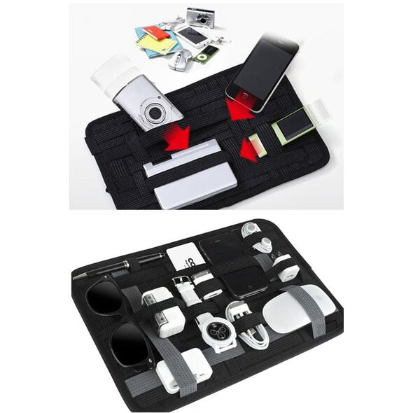 Αυτό το σύστημα συγκράτησης έχει ελαστικούς ιμάντες που μπορείτε να διαμορφώσετε ανάλογα με το μέγεθος των αντικειμένων και θα κρατήσει σταθερά στη θέση τους στυλό, σημειωματάρια, κινητά τηλέφωνα, φορτιστές, πορτοφόλια αλλά και μικρο-εργαλεία, καλλυντικά, φάρμακα και άλλα πολλά!