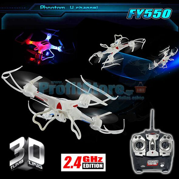 Αυτό το απίστευτο τηλεκατευθυνόμενο είναι σε θέση να κάνει βουτιές στον αέρα, φανταστικούς ελιγμούς και εναέριες εκτοξεύσεις. Το Τηλεκατευθυνόμενο Ελικόπτερο Quadcopter Drone FY-550 εκτελεί φανταστικά ακροβατικά, γρήγορες απογειώσεις και ταχύτατες προσγειώσεις! Προκαλεί δέος, λειτουργώντας με διαφορική κατεύθυνση. Θα εντυπωσιαστείτε όταν διαπιστώσετε τους ελιγμούς που μπορείτε να κάνετε με τσίτα τα γκάζια!