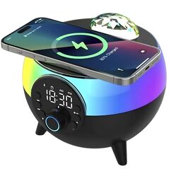 Ασύρματο Ηχείο Bluetooth και Ασύρματος Φορτιστής με 15W φόρτιση και LED φωτισμό RGB. Ιδανικό για διακόσμηση και λειτουργία αφύπνισης. Απολαύστε κρυστάλλινο ήχο και εύκολη σύνδεση Bluetooth. Ιδανικό για το σπίτι ή το γραφείο.