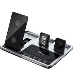 Φορτιστής πολλαπλών λειτουργιών 5 σε 1. Ο ασύρματος γρήγορος φορτιστής είναι συμβατός με όλες τις συσκευές τηλεφώνου με δυνατότητα Qi.Η βάση στήριξης με εργονομικό σχεδιασμό επιτρέπει στους χρήστες να φορτίζουν το κινητό τηλέφωνο,το ρολόι,τα ασύρματα ακουστικά τους ταυτόχρονα.