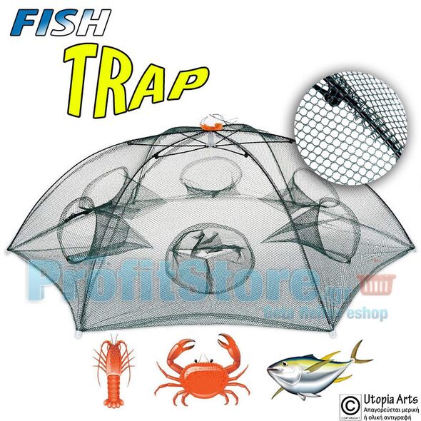 Τηλεσκοπική Παγίδα για Ψάρια - Κιούρτος με 6 Τρύπες - Εισόδους - Αυτόματο Εύκολο Ψάρεμα